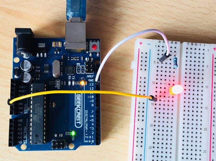 Neben all dem Lernstoff und Training haben ich dann auch noch ein bisschen Zeit gefunden und mich mit meinem RaspberryPi und dem Arduino beschäftigt. So habe ich ein kleines Einsteigerprojekt nochmal gebastelt, wo es darum geht mit dem Arduino gezielt eine LED zum blinken/leuchten zu bekommen. Die Anleitung dazu könnt ihr hier finden. Außerdem gibt es nun auf meine Seite einen Reiter „Maker“ wo ich immer mal wieder Projekte mit dem RaspberryPi oder Arduino vorstellen werde.