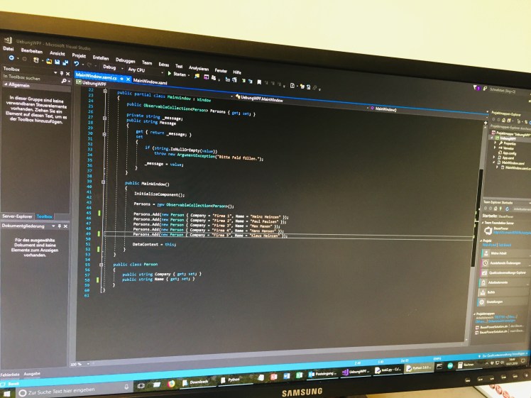 Weiterhin nutzte ich die Zeit auf Arbeit zum Programmieren in C# sowie WPF. Gerade das Thema WPF ist nochmal ein riesiger Themenkomplex für sich. Man muss es sich grob so vorstellen, das C# der Code/die Programmlogik eines Computerprogrammes ist und man mit WPF die Oberfläche designt.