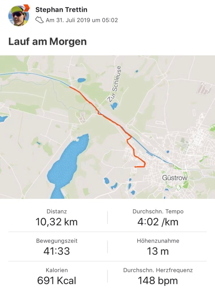 Tja und dann war die Woche auch schon wieder um und gestern, mit mehr Zeit ging es dann etwas in die Güstrower Heidberge. Auf jeden Fall eine schöne Abwechslung zu den üblichen Laufstrecken und wenn morgens noch alles schläft, hat man „die Welt“ für sich allein.