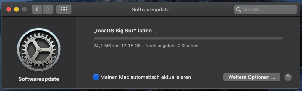 Naja, ich ließ über Nacht mein MacBook Pro laufen und erfreute mich, dass ich am Samstagmorgen um 7Uhr! mit dem Download und der Installation fertig war. Also gute 14h brauchte und das mit Jahr 2020… Uff, kann man mal machen. Mein MacBook Air, welches ich für die ganzen Beta-Tests nutze läuft mit der letzten BigSur-Beta und ich werde es wohl erstmal auf dem Stand lassen. Nochmal 14h, dafür habe ich gerade keinen Nerv.
