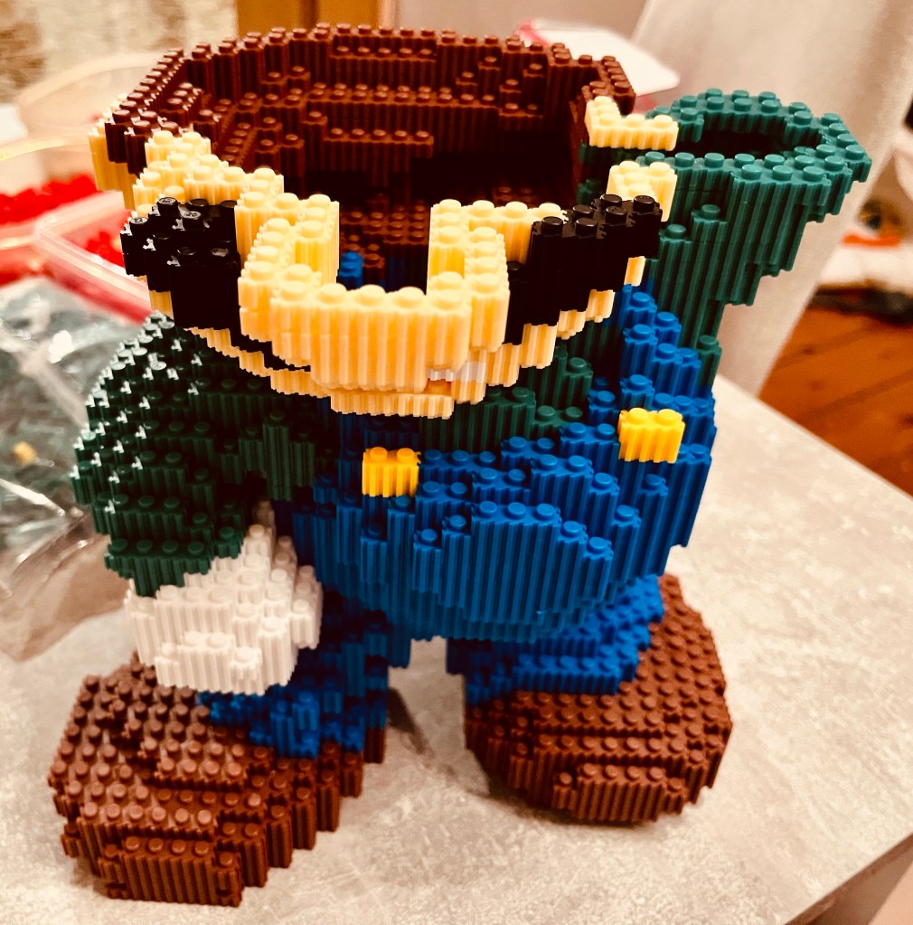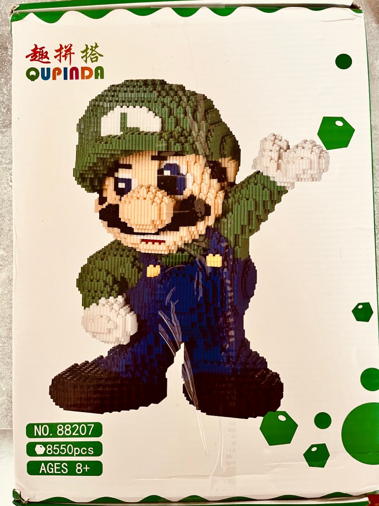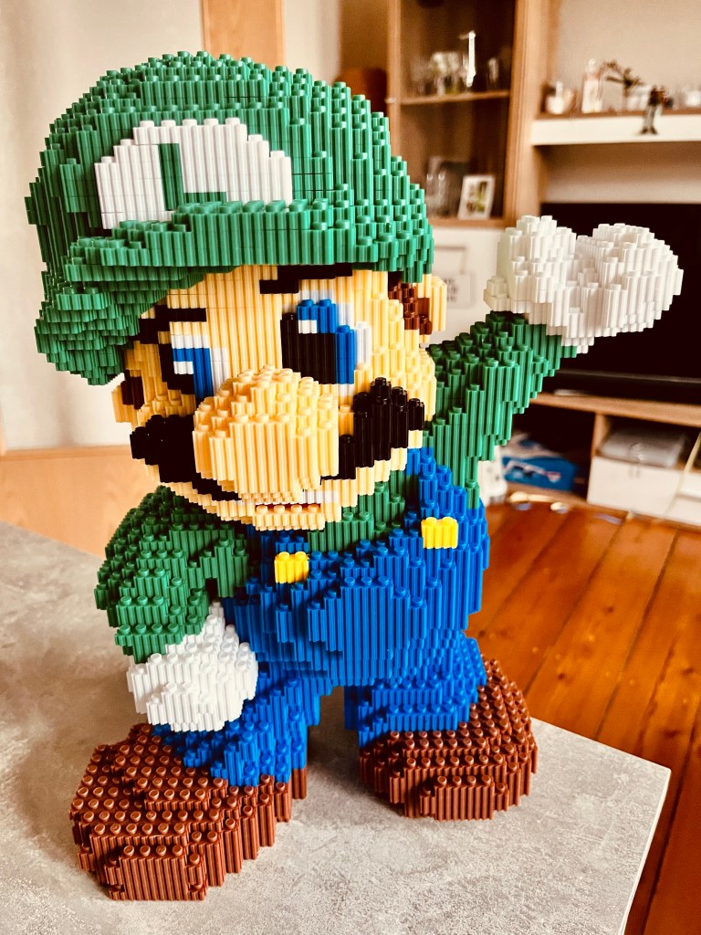 So bekam ich zu Weihnachten einen Luigi als Klemmbausteine-Set mit einer beachtlichen Größe und Höhe geschenkt. Dieser macht auf einem Sideboard eine Menge her und erfreut mich, zusammen mit Mario, jeden Tag aufs Neue.