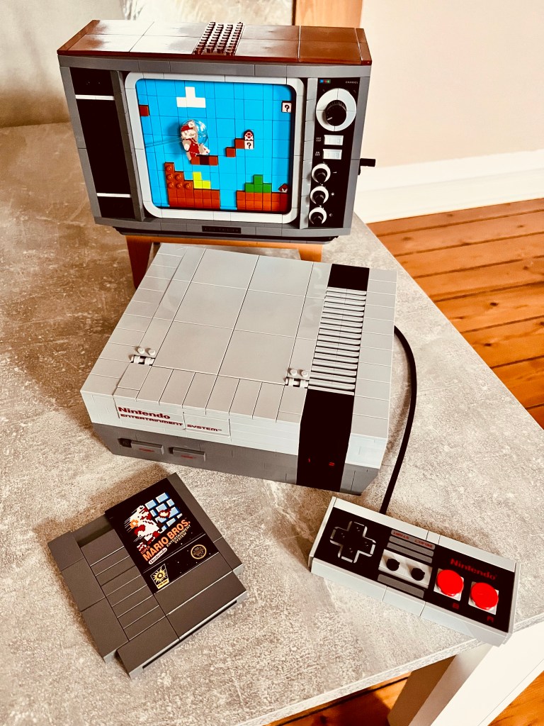 So haben wir es in diese Woche geschafft, die NES-Konsole von Lego (71374) fertig zu bauen. 2646 Teile für Fernseher, Konsole, Spielkassette und Controller. Es war ein großer Spaß und durch das drehen der Kurbel am Fernseher, läuft Super Mario sogar durch einen Teil des 1.Levels vom besagtem Spiel.