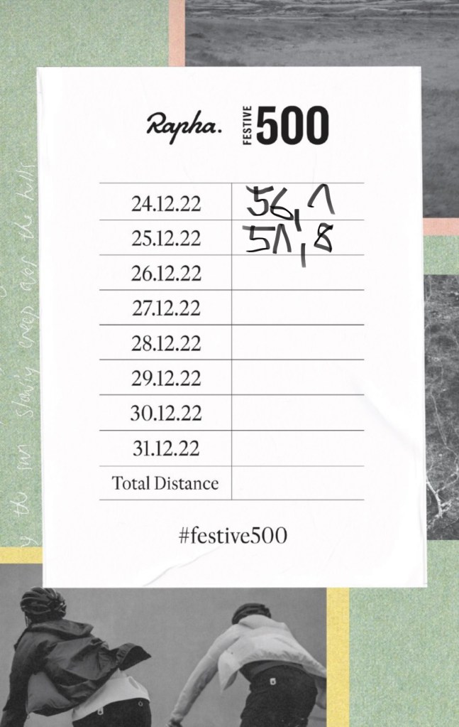 Die Woche begann sehr entspannt, denn bis Mittwoch hatte ich frei. So war ich nochmal mit dem Gravelbike unterwegs, denn das Wetter spielt mittlerweile auch wieder mit und von Minusgraden sind keine Spur. Passenderweise läuft seit gestern auch wieder das weltbekannt Rapha Festive500. Im Zeitraum vom 24.12 – 31.12. gilt es 500km auf dem Rad zurückzulegen. Sprich: 8 Tage / 500km = 62,5km pro Tag.