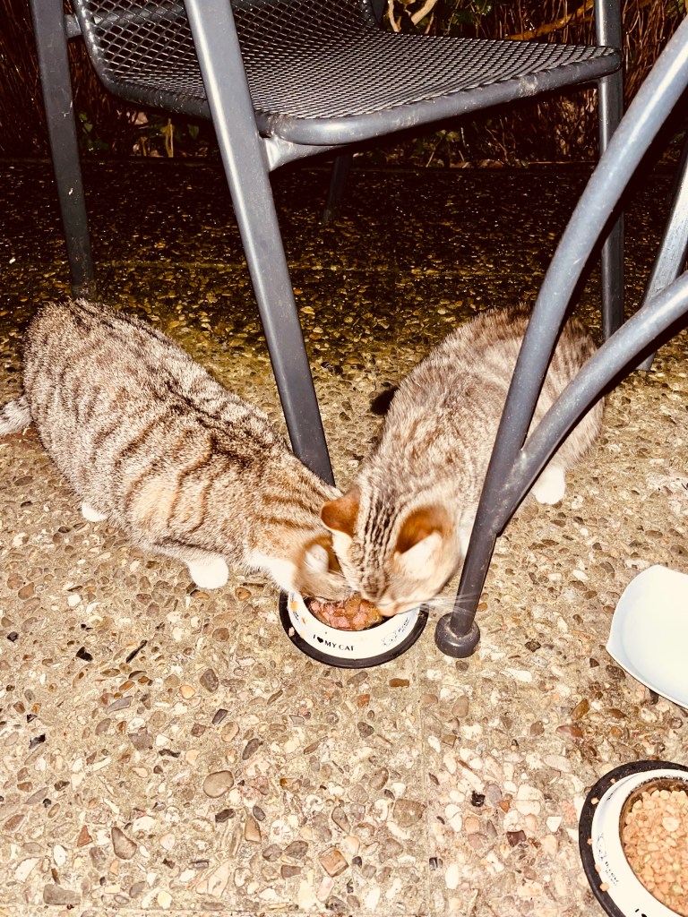 Okay, sie haben uns schon ein paar Mal gesehen, darum war die Scheu vielleicht auch nicht so groß. Unserer Hündin haben wir davon aber nichts erzählt, denn sie ist nicht so der Katzenfan.