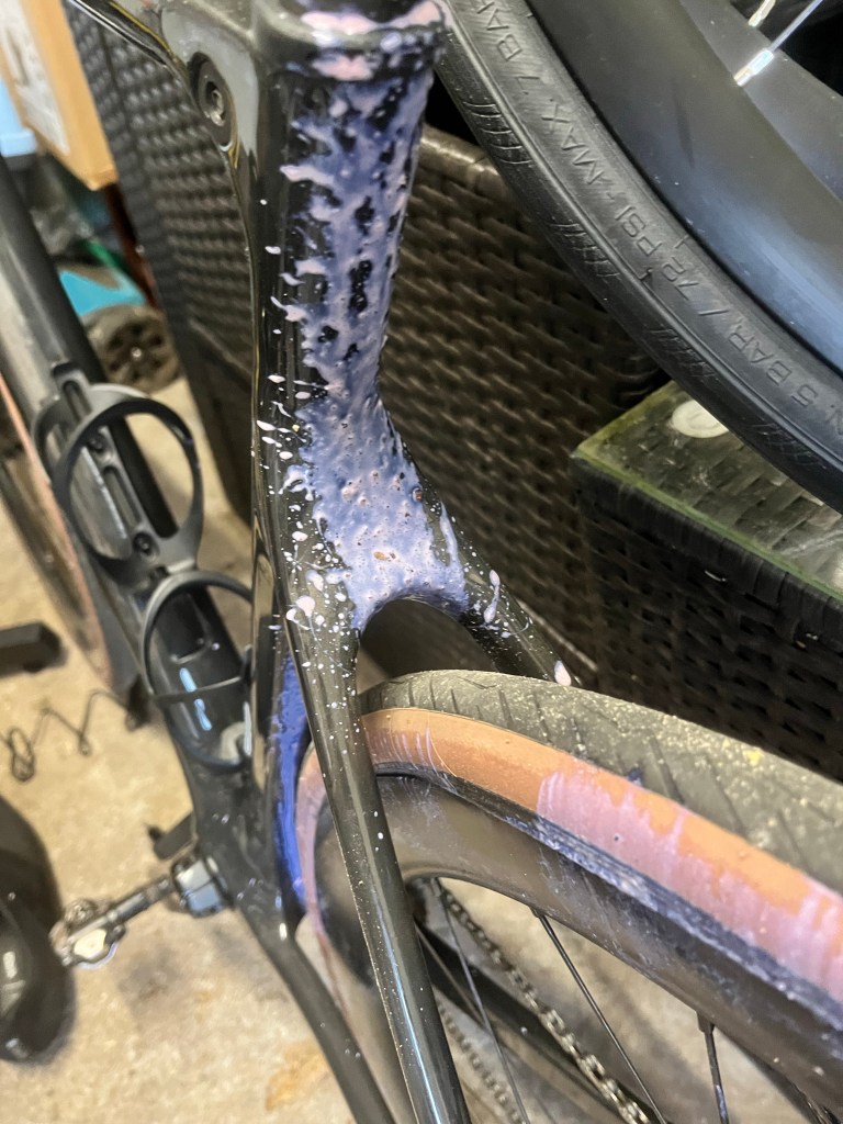 Auch wenn es nur 3 Radausfahrten wurden, kamen insgesamt trotzdem 5,5h zusammen. Dann habe ich gestern noch Bekanntschaft mit der Dichtmilch meines Hinterreifens gemacht, denn ich scheine irgendwo im Dunkeln reingefahren zu sein und die Milch machte sich bemerkbar. Leider wurde das Loch damit nicht geflickt und so musste ich bei dem ganzen Schmadder einen Ersatzschlauch einziehen, bevor ich die Weiterfahrt antreten konnte.