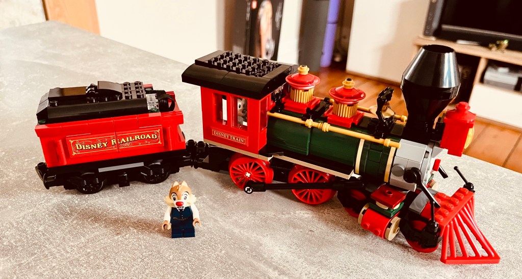 Es handelt sich dabei um die Nachbildung des Disney-Bahnhof mit Zug aus dem Disneyland. Wer schon mal im Disneyland Paris gewesen ist, wird den Bahnhof, den Zug und die Wagons wiedererkennen. Mit 2925 Steinen gehört es zu den größeren Set und die Herausforderung bei uns wird werden, wo wir den Zug am Ende fahren lassen. Lego-Schienen gibt’s dazu es bei dem Set nämlich auch und nur zum Rumstehen ist es zu schade.