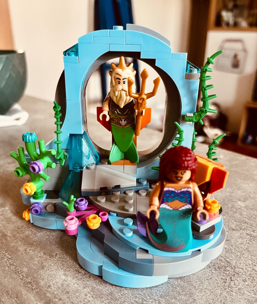 Um sich etwas abzulenken, wurde zum Beispiel dann fleißig Lego gebaut. Nachdem wir Sonntagabend noch spontan ins Kino gegangen sind um dort den neuen, alten Disney-Film „Arielle“ zu schauen – wurde passend dazu das Lego-Set „Arielles königliche Muschel“ (43225) in dieser Woche begonnen. Dieses Set besteht aus 1808 Teilen und 5 Minifiguren. Dazu gibt es noch Sebastian, die Krabbe und Fabius, den Doktorfisch als Legofigur.