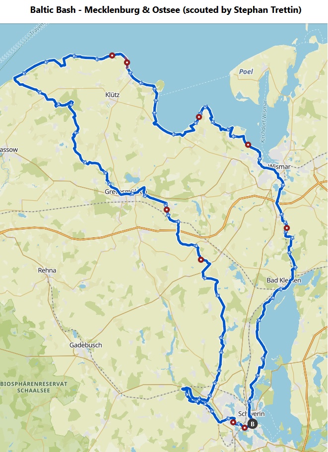 Also habe ich mich rangemacht und eine schöne Route, den „Baltic Bash“ von Schwerin über Wismar entlang der Ostsee und zurück nach Schwerin erstellt. Insgesamt 167km und 850hm und ich bin schon gespannt, was andere Fahrer über die Tour berichten werden. Alle Routen der diesjährigen Orbit360-Gravel Series gibt es hier zu finden.