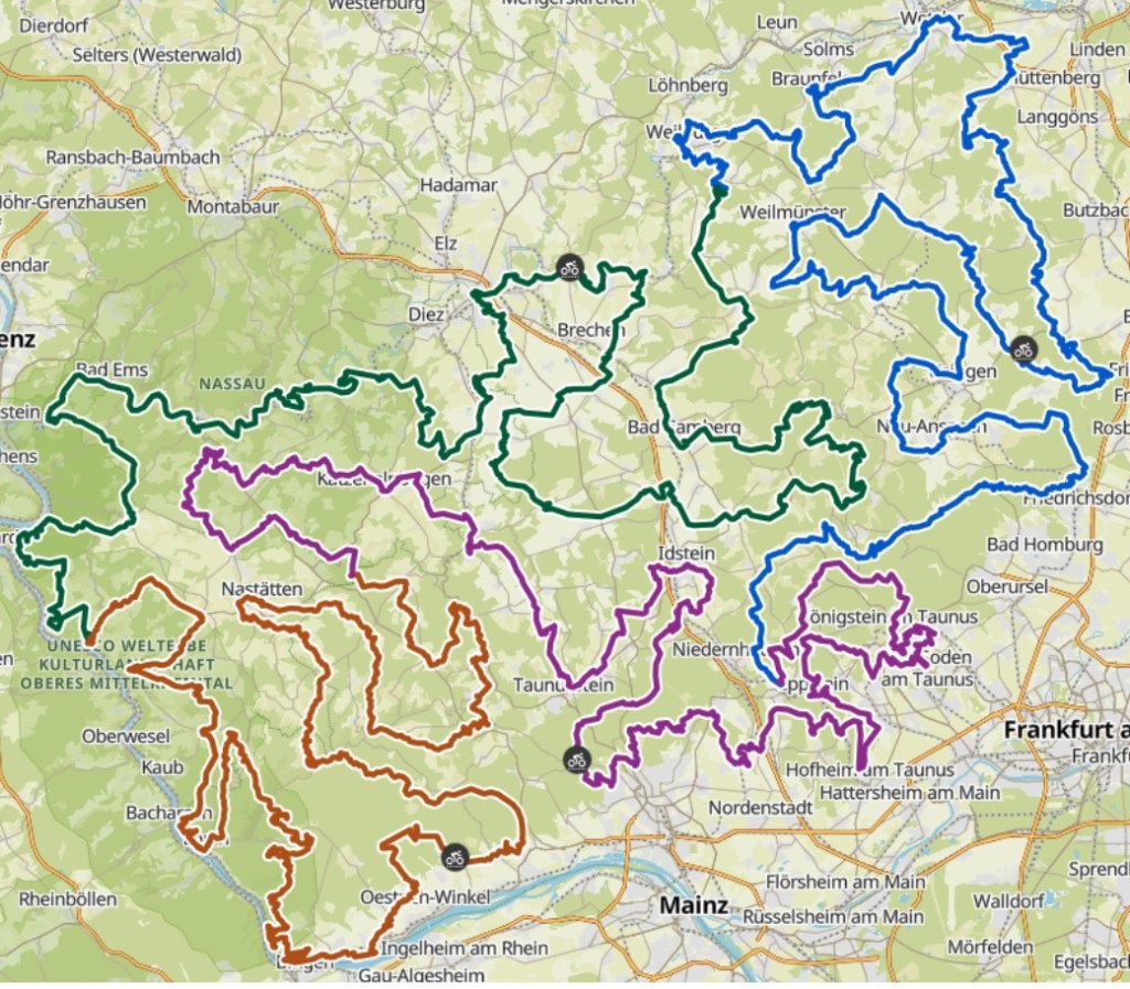 Die Ereignisse überschlagen sich sprichwörtlich und diese Woche stand ganz im Zeichen der Routen. Am Donnerstag hat Jesko vom TaunusBikepacking die Route für dieses Jahr bekanntgegeben. Insgesamt erstreckt sich nun die Strecke auf 1.006km mit 19.120hm. Es geht ordentlich bergauf und bergab. Ebene Strecken gibt es, wenn nur kurz am Rhein entlang – sonst ist es ein ständiges auf und ab.