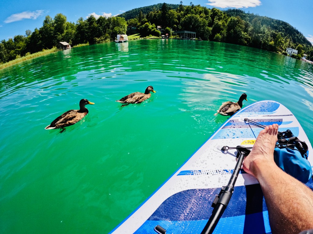 Da das Wetter, bis auf den Anreisetag einfach Sommerlich war, hat sich die Mitnahme unserer SUP‘s wirklich gelohnt und wir haben einige Male den See unsicher gemacht.