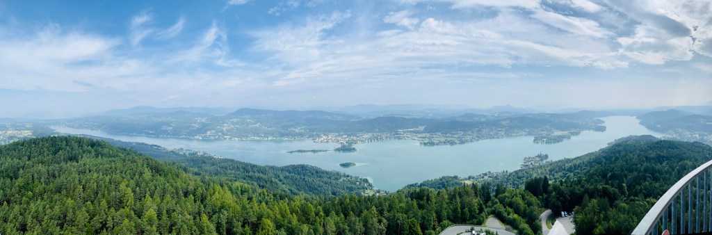 Auch waren wir auf dem Pyramidenkogel, einem Aussichtsturm mit herrlichem Blick auf den Wörthersee. Der Lift war den Tag „Außer Betrieb“, Pech für einige – zogen wir sowieso die 441 Treppen vor. Schließlich ist man ja noch jung und so bot sich oben eine wunderbare Aussicht.
