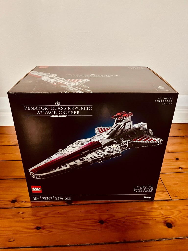 Außerdem ließ ich es mir nicht entgehen um Schlug am 1.Oktober bei Lego richtig zu. So holte ich mir die USC Venator (75367) mit 5381 Teilen. Die Maße sind 109x54x32cm, also ein ordentlicher Brocken! Schon der Karton ist riesig und ich freue mich schon sehr, wenn wir nach Paris mit dem Aufbau beginnen.