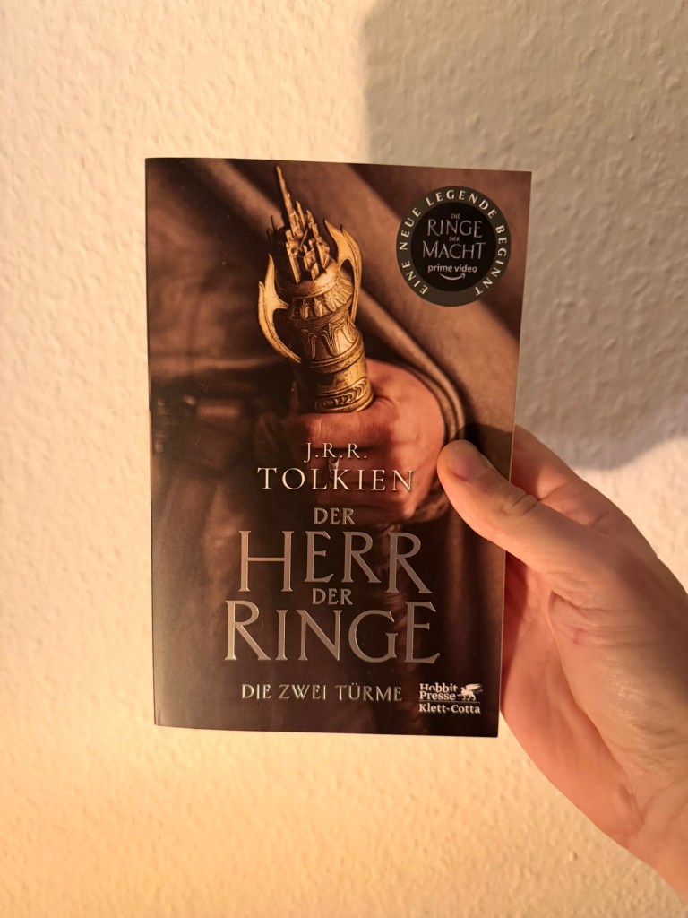 Dafür habe ich nach langer Zeit mal wieder ein neues Buch angefangen. Eigentlich weiß ich, wie es ausgeht, aber ich habe mich dieses Mal für die Originalversion von „Herr der Ringe – Die 2 Türme“ entschieden. Quasi der 2.Band der Trilogie. Die Filme kenne ich auswendig, aber im Buch gibt’s ja doch noch 1-2 neue Details und darum finde ich es aktuell ganz spannend, abends im Bett noch ein paar Seiten zu lesen, bevor man einschläft.